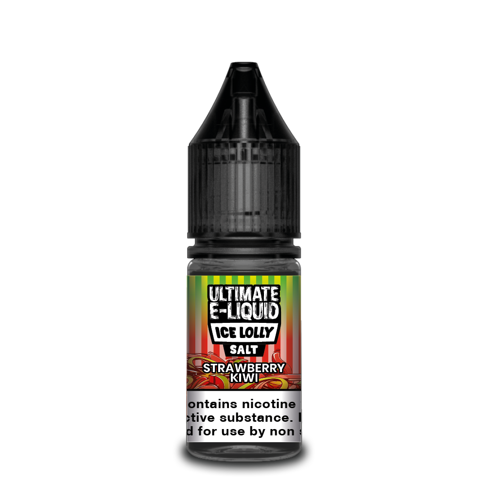 Savour the cool flavour of Ultimate E-Liquid Salt 10ml Ice Lolly Strawberry Kiwi e-liquid. This delectable combination of tart kiwi and juicy strawberries is ideal for fruit lovers. This E-Liquid vape juice offers a smooth and enjoyable vaping experience thanks to its 50/50 VG/PG blend. A pleasant throat hit is delivered by the 20mg &10 mg of nicotine salts in each 10 ml container. Enjoy the delightfully cold and sweet flavours of a traditional ice lolly by using this high-quality E-Liquid vape juice. Get yours today to savour a taste of summertime bliss with every puff.